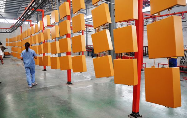 德國進口的全長250米的全自動噴涂生產線,以及木紋轉印車間。